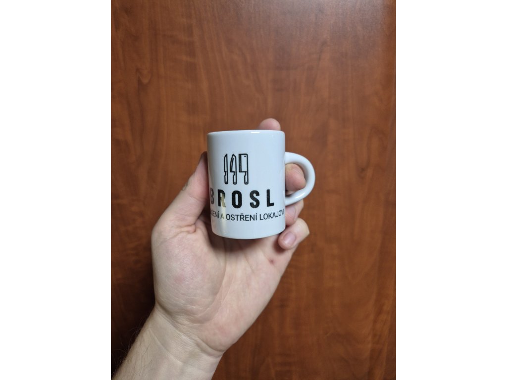 Malý hrníček - průměr 53 / výška 67 mm, objem 80 ml / hmotnost 140 g, potisk cca 80x60 mm.